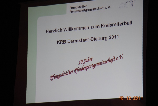 Anlässlich des 10-jährigen Vereinsjubiläums der Pfungstädter Pferde Sport Gemeinschaft fand dieses Jahr der Kreisreiterball am 10. Dezember 2011 in der Wagenhalle in Griesheim statt.